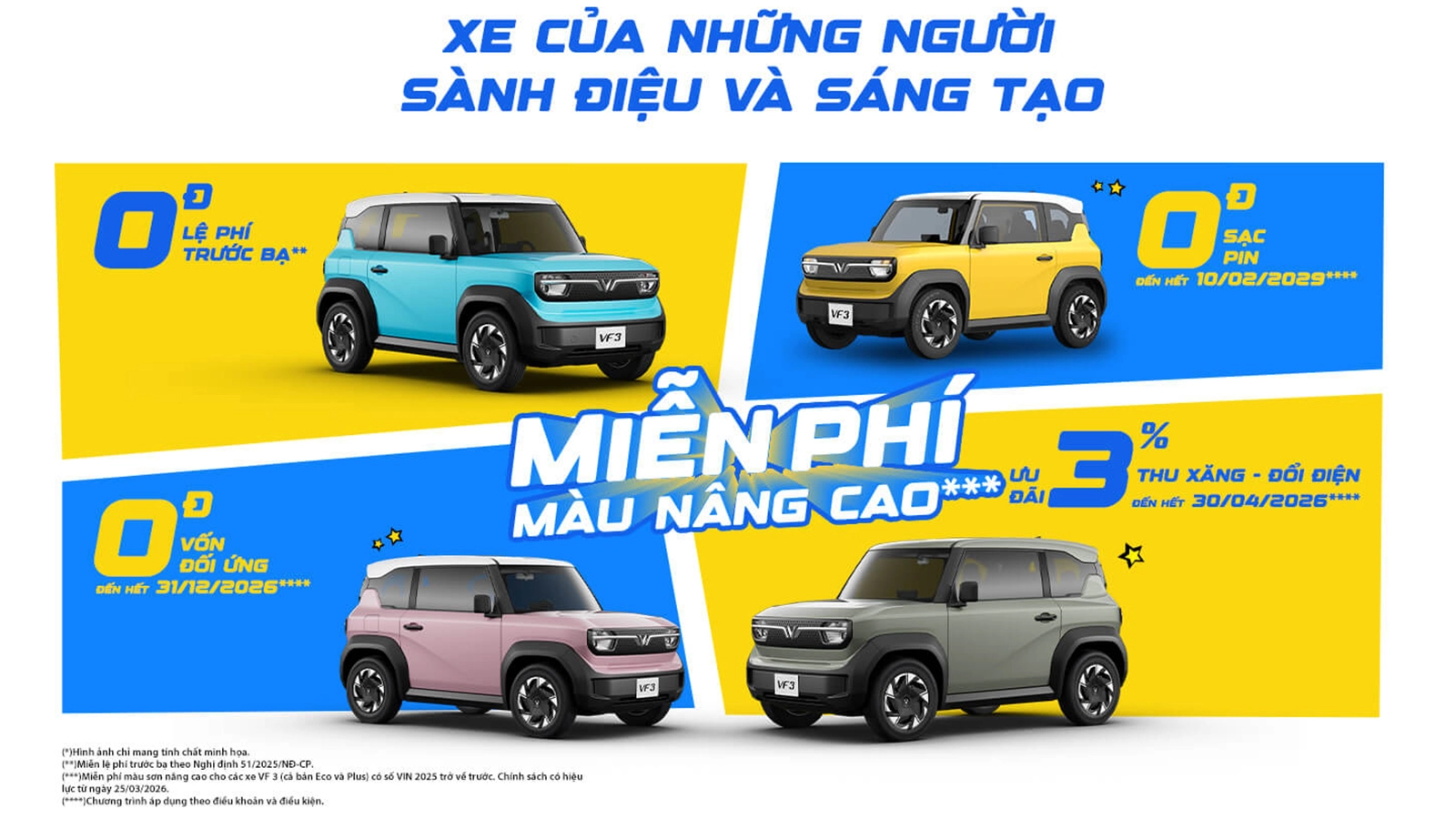Xe VinFast có sẵn nhiều màu để lựa chọn - Nhiều ưu đãi cho khách hàng - Phương thức thanh toán linh hoạt, phù hợp: trả thẳng, trả góp với lãi suất ưu đãi. Hỗ trợ lãi suất vay ưu đãi. QUÝ KHÁCH XIN VUI LÒNG LIÊN HỆ với Phòng Bán Hàng để mua xe với giá tốt nhất!